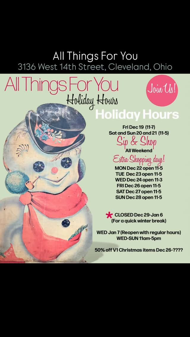 All Things For You, is located at 3136 West 14th Street, Cleveland, OH (in the fun and fashionable Tremont neighborhood). Visit us and explore our lovely home for all things vintage. Here you can peruse our 4 floors of dealers with their well curated, beautifully displayed vintage treasures. We also now have our very own ATFY free parking lot so you can shop in comfort and at your own pace.