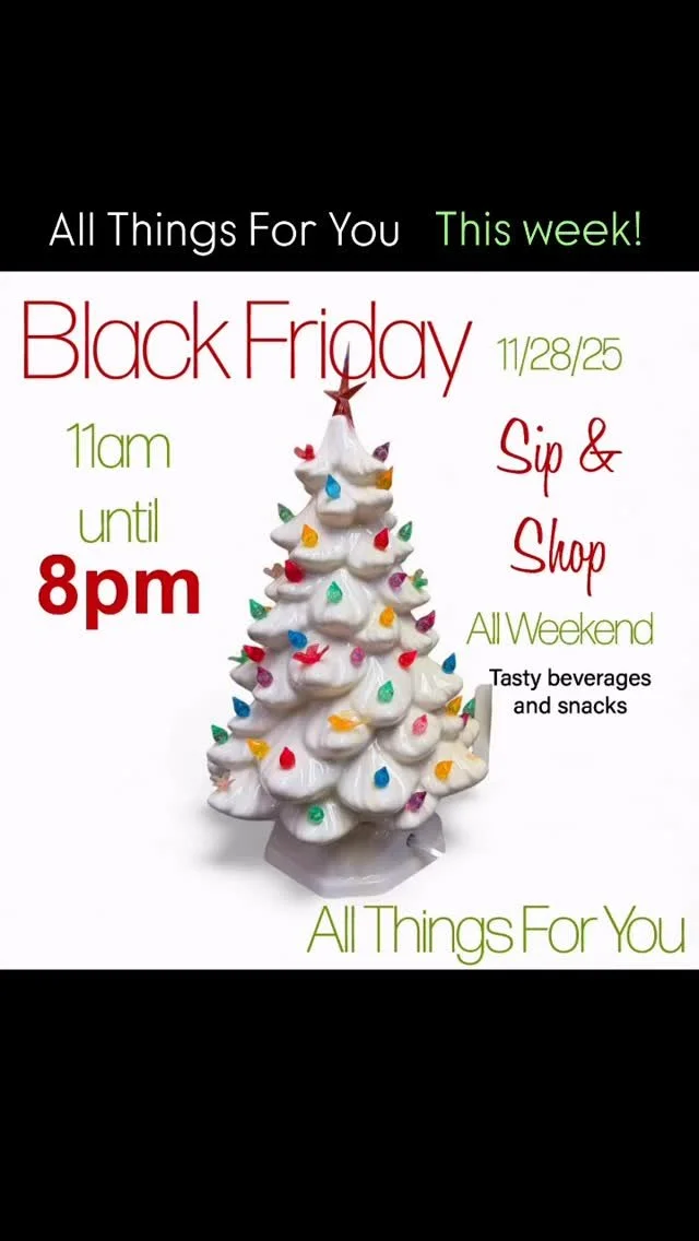 Follow us on Instagram and Facebook ( @allthingsforu ) for special events, sales and new merchandise arrivals