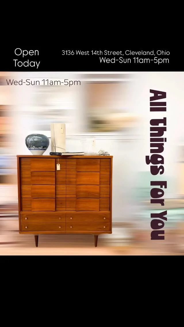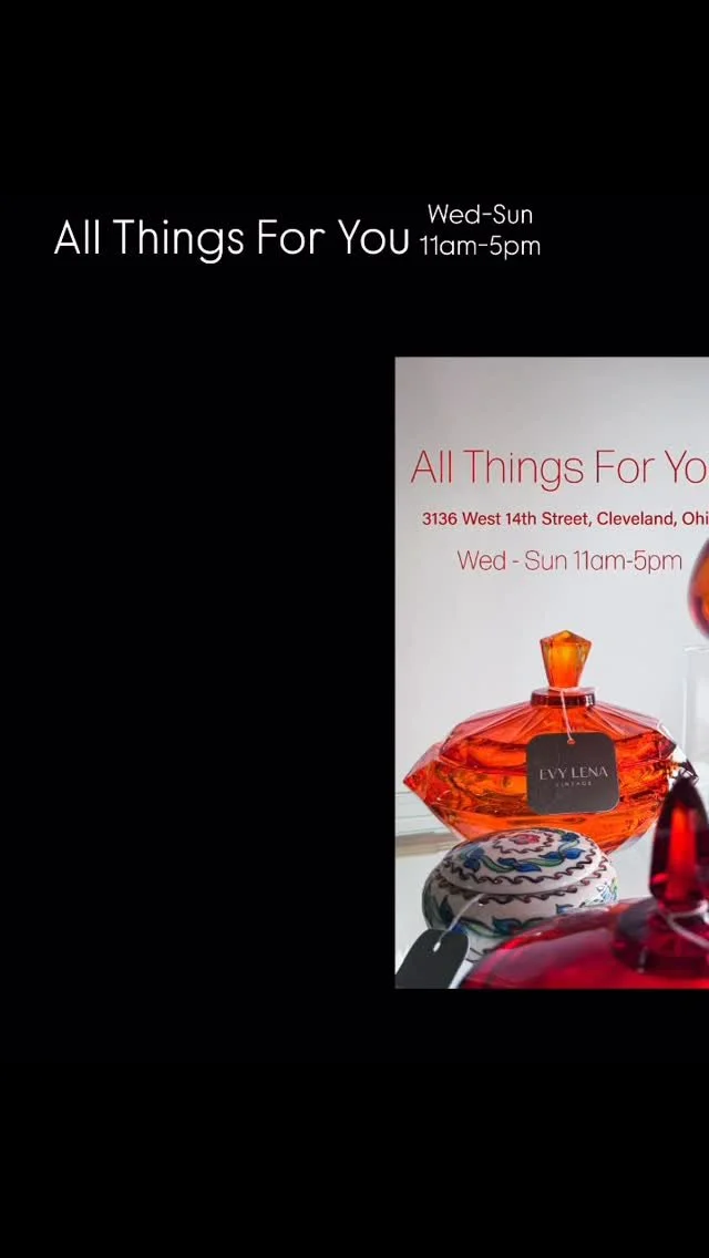 All Things For You, is located at 3136 West 14th Street, Cleveland, OH (in the fun and fashionable Tremont neighborhood). Visit us and explore our lovely home for all things vintage. Here you can peruse our 4 floors of dealers with their well curated, beautifully displayed vintage treasures. We also now have our very own ATFY free parking lot so you can shop in comfort and at your own pace.